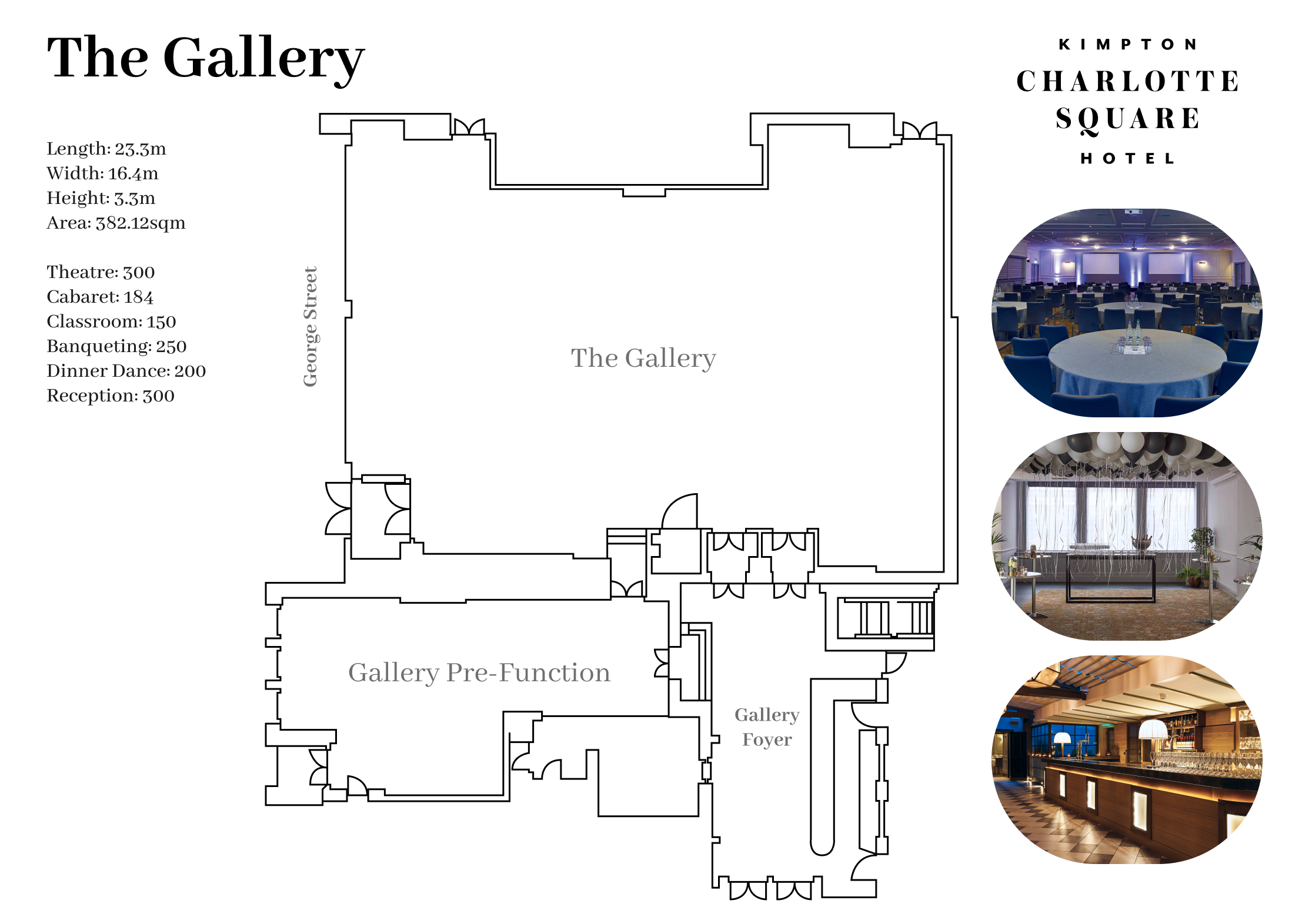 | Gallery | 382 | 3.3 | yes | yes | 350 | 200 | 300 | 200 | 500 | 60 | 50 |