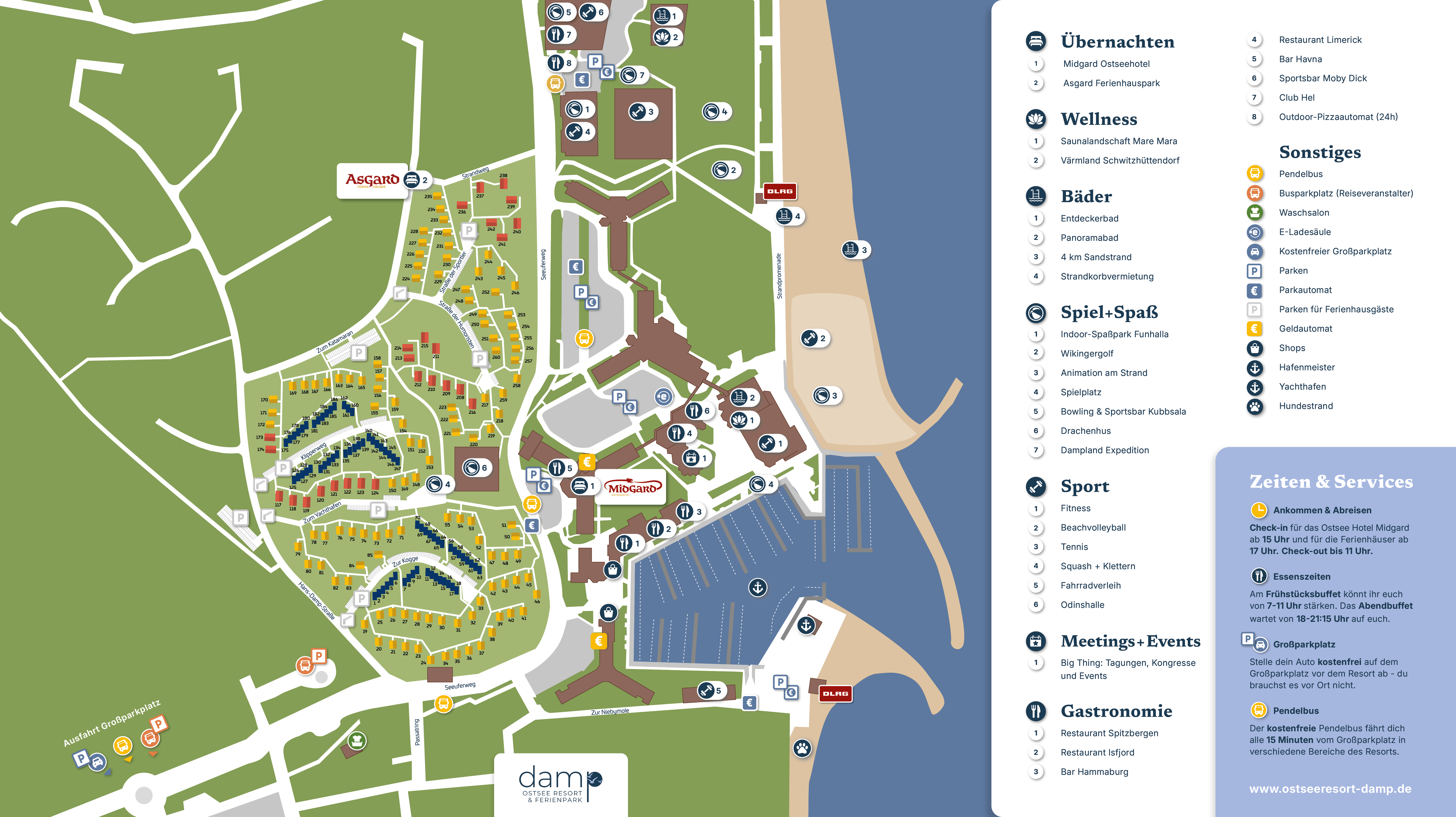 Here in Damp, between Kiel and Flensburg, directly on one of the most beautiful beaches in northern Germany, you can enjoy your stay by the Baltic Sea all year round. Comfortably furnished vacation homes and the Ostseehotel Midgard are located in the middle of the Damp Ostsee Resort & Ferienpark.